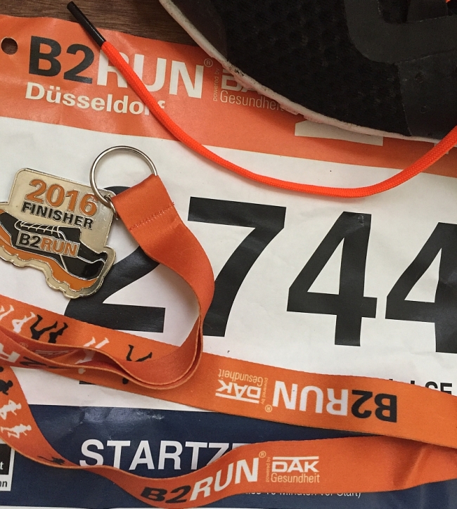 Die „deutsche Firmenlaufmeisterschaft“ B2Run zieht durch etliche Städte, so auch durch Düsseldorf. Ist natürlich Ehrensache dass ich da mitmache, zumal mein Arbeitgeber erstmalig dabei ist und sich alle bei der Organisation sehr viel Mühe gegeben haben. Immerhin 19 Läufer konnten kurzfristig aktiviert werden, jede Geschwindigkeitsklasse ist dabei, alle sind gut drauf, so muss es sein.