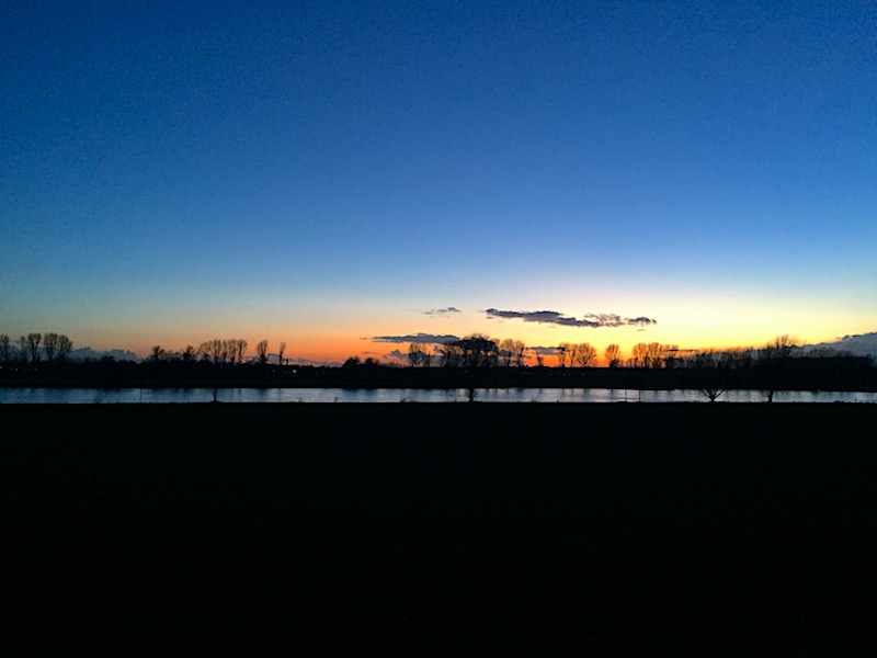 Wohl also dem Läufer der seine Runden in die Dämmerung hineinläuft, genau zur besten Zeit den Rheindeich „erklimmt“ und mit einer fulminanten Farbenpracht samt Planetensichtung belohnt wird:
